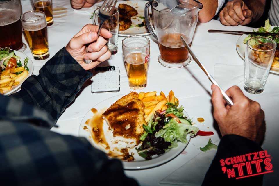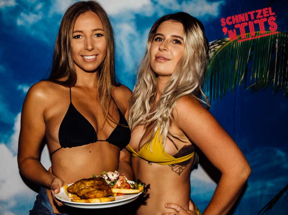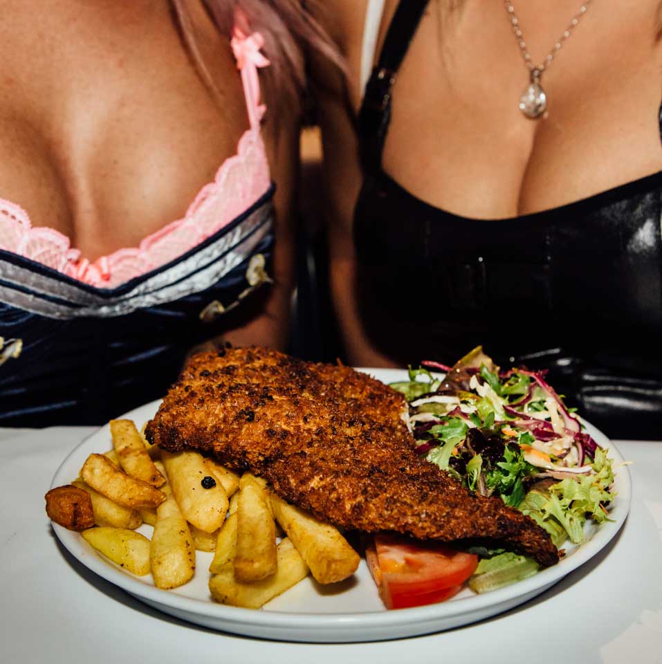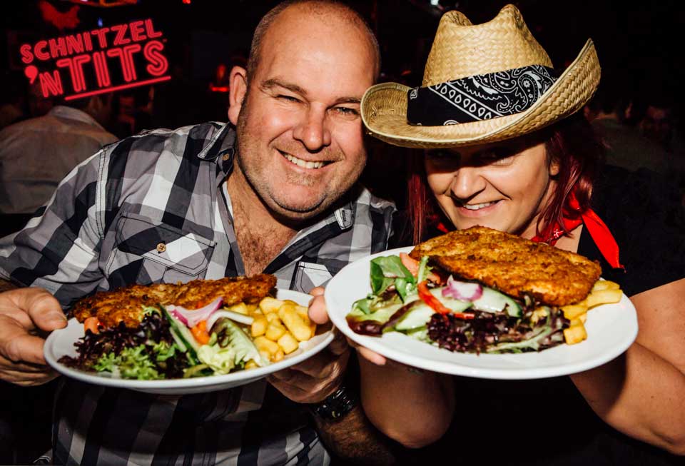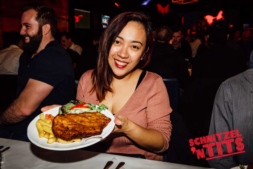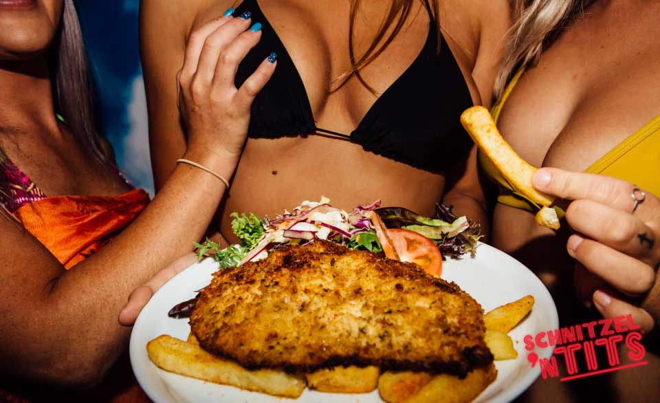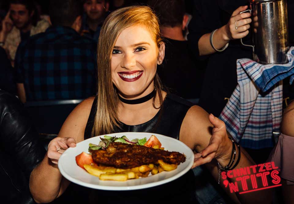 Schnitzel n Tits is known for our famous burlesque shows, comedy and babelicious barmaids but people can forget about the abbreviated first part of the name for Schnitzel. No matter where Schnitzel n Tits is happening we make sure the juicy delicious Schnitzels are top notch!